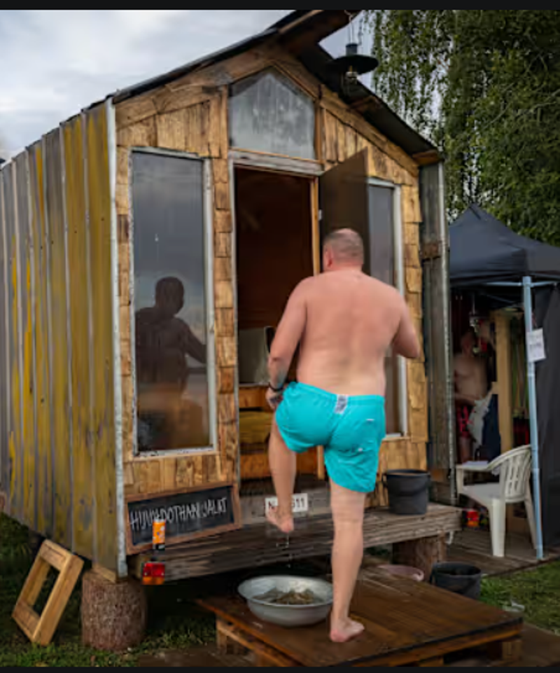 Saunakylässä sinulla on mahdollisuus päästä hyppimään erikoisesta itsetehdystä saunasta toiseen 10€ saunarannekkeella. Paikalla mm vanhaan paloautoon tehty sauna, telttasauna ja kärrysauna..